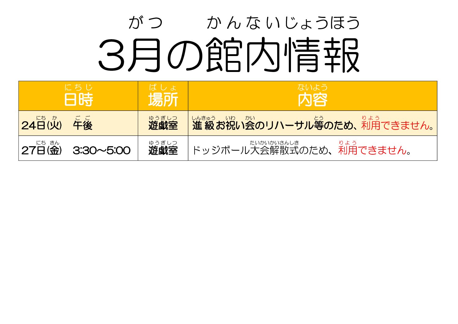 2月18日(水)に実施予定の『アートK』ですが、講師の方の事情により、中止となりました。 ご理解とご協力のほどよろしくお願いいたします。