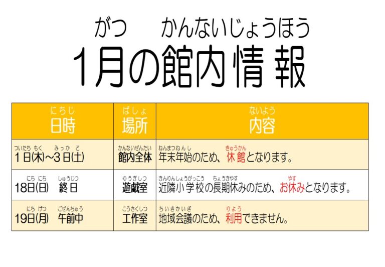 令和8年1月 館内情報